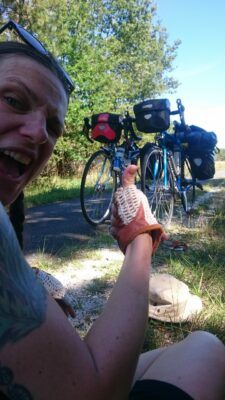 Après une petite surprise similaire à la précédente et au bout de 45km, nous nous arrêtons à Carcans et j’ai mal aux genoux. Du coup, on s’embourgeoise et on prend un airBnB pour trois nuits histoire de se reposer un peu. En plus pour Abi aussi ça commence à tirer. L’embourgeoisement, refrain récurrent de ma vie depuis que je connais Colin xD Eh regardez ! Je me suis maquillée :)