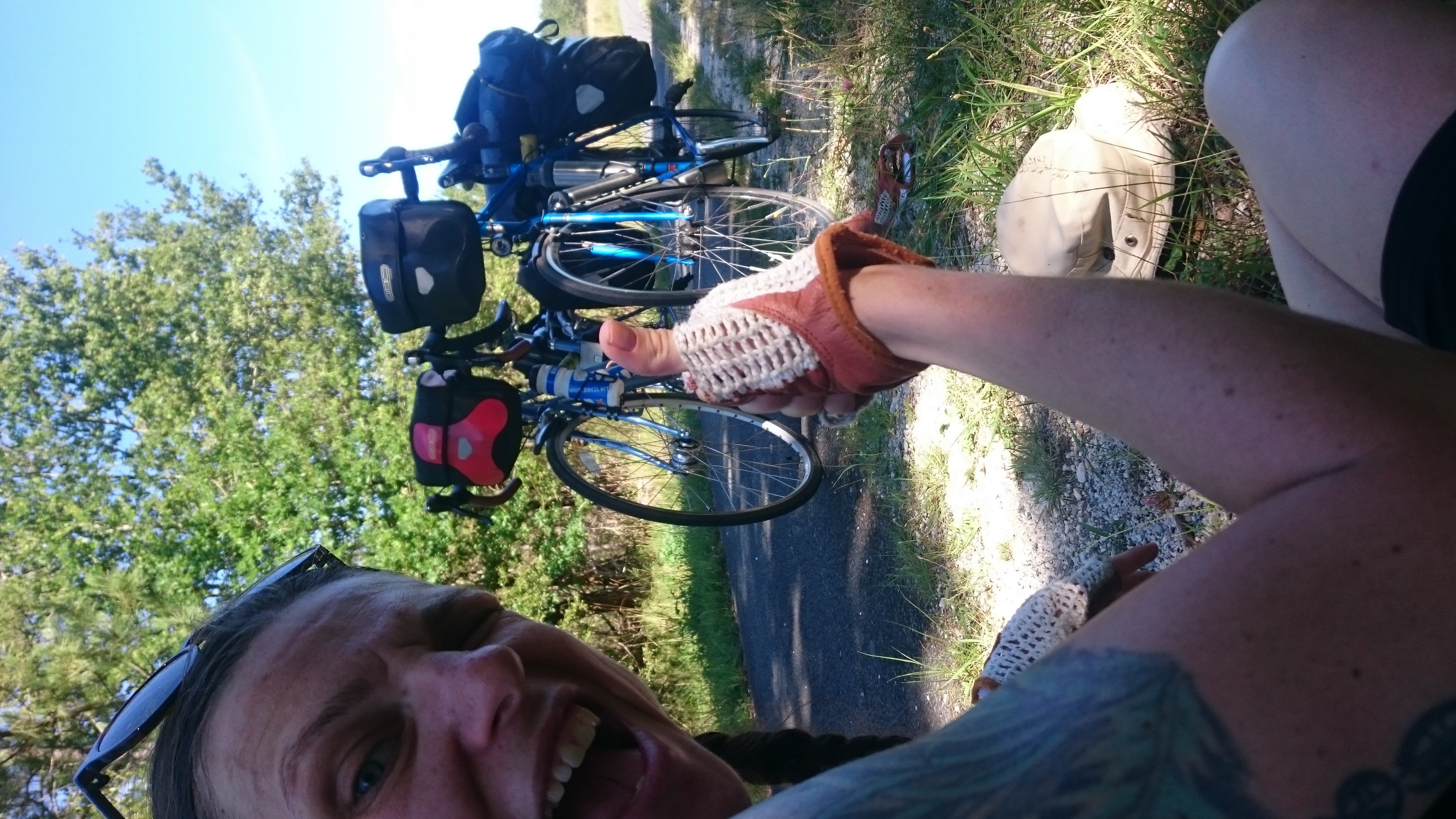 Pause casse-croûte, à la table d’à côté une maman et son fils d’environ sept ans faisaient l’école buissonnière pour piquer-niquer ensemble. La piste était toujours aussi charmante, on croisait des cyclistes, mais pas trop, on était tranquilles :)